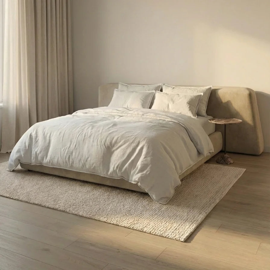 Statt dir ausschliesslich klassische Studioaufnahmen zu zeigen, haben wir uns bewusst für eine Vielfalt an Stimmungen und Lichtverhältnissen entschieden. So bekommst du ein ehrliches Gefühl dafür, wie ein komplettes Leinenbettwäsche-Set in unterschiedlichen Räumen und zu verschiedenen Tageszeiten wirkt.