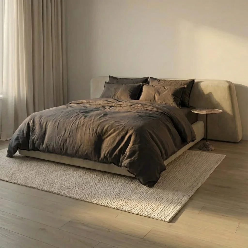 Statt dir ausschliesslich klassische Studioaufnahmen zu zeigen, haben wir uns bewusst für eine Vielfalt an Stimmungen und Lichtverhältnissen entschieden. So bekommst du ein ehrliches Gefühl dafür, wie ein komplettes Leinenbettwäsche-Set in unterschiedlichen Räumen und zu verschiedenen Tageszeiten wirkt.
