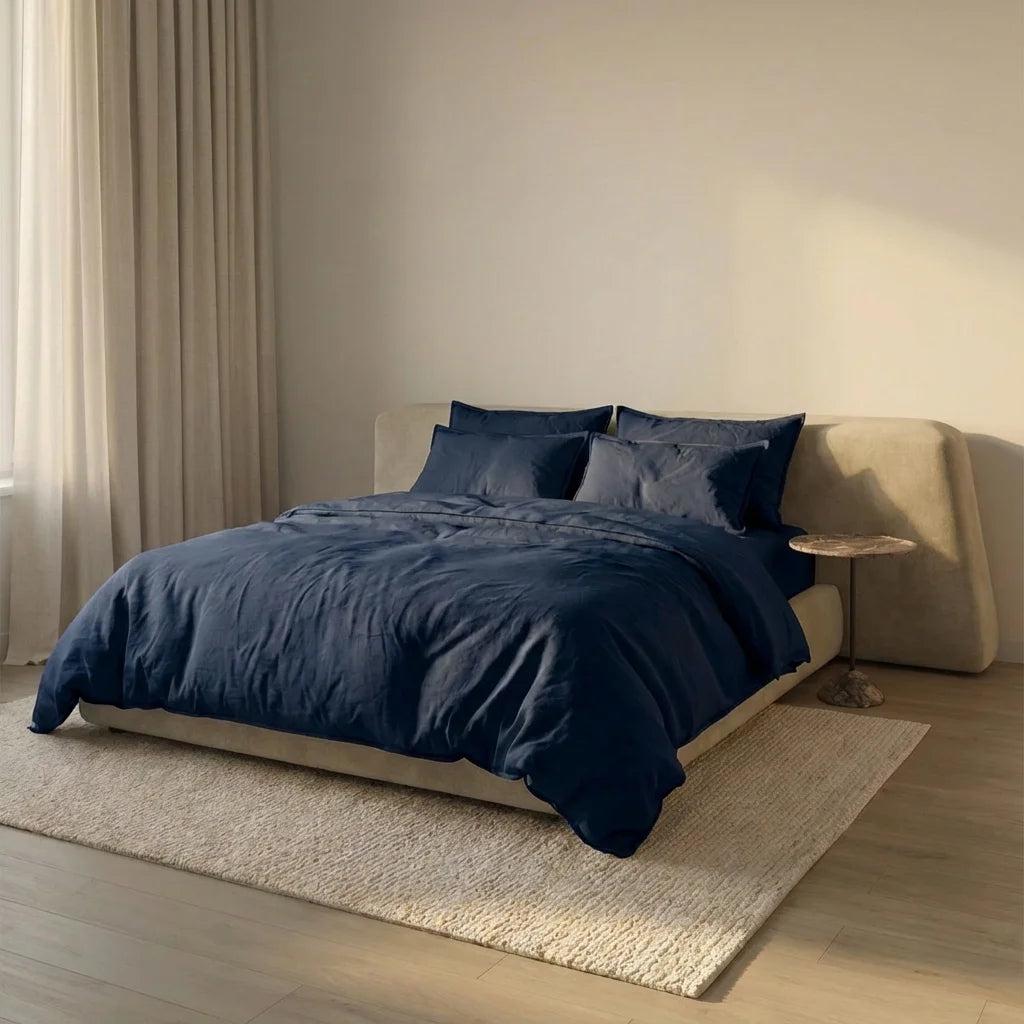 Statt dir ausschliesslich klassische Studioaufnahmen zu zeigen, haben wir uns bewusst für eine Vielfalt an Stimmungen und Lichtverhältnissen entschieden. So bekommst du ein ehrliches Gefühl dafür, wie ein komplettes Leinenbettwäsche-Set in unterschiedlichen Räumen und zu verschiedenen Tageszeiten wirkt.